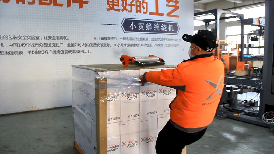 相對于傳統(tǒng)人工纏繞,可以提高包裝效率,纏繞得更緊密,更節(jié)省。